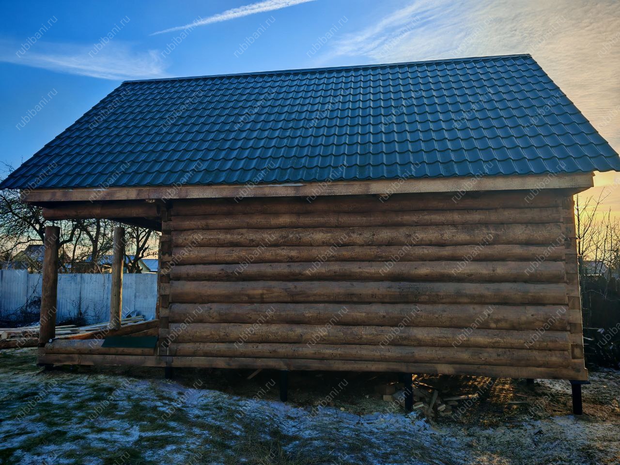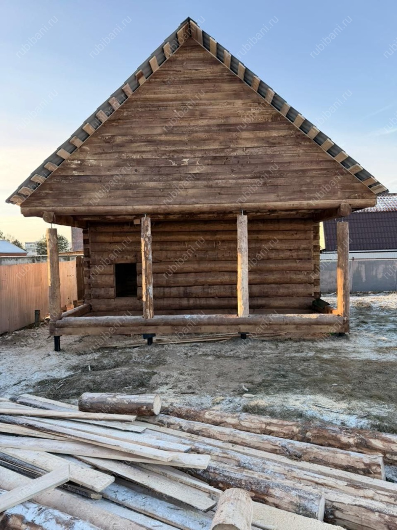 Баня 5×4 с рубленой террасой, 30 м²